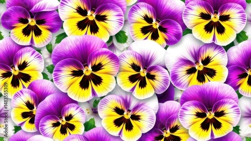 Floral Pattern, Purple, yellow, and white pansies seamless repeat