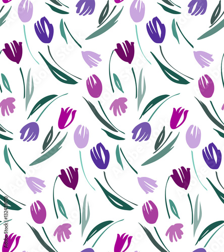 Floral seamless background pattern with tulips. Spring flowers blossom vector illustration hand drawn.