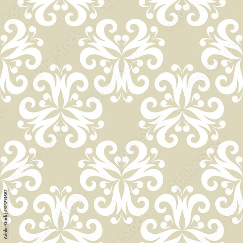 Floral seamless background. White design on olive green