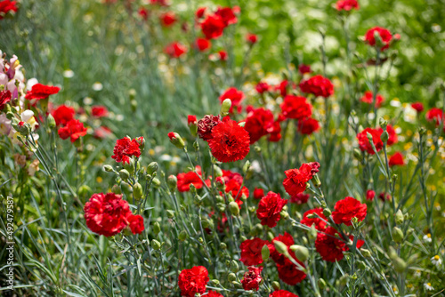 Flores rojas en una huerta
