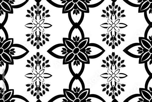 Flower damask ornate seamless pattern. Vector surface design for fabric, apparel textile, book, interior, wallpaper background