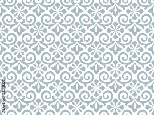 Flower geometric pattern. Seamless vector background. White and blue ornament. Ornament for fabric, wallpaper, packaging, Decorative print