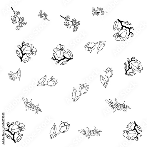 Flower Set Pattern Line Art