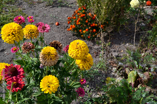 Flower Zinnia. Beautiful flower abstract background of nature. Summer landscape. Zinnia, a genus of annual and perennial grasses and dwarf shrubs of the Asteraceae family