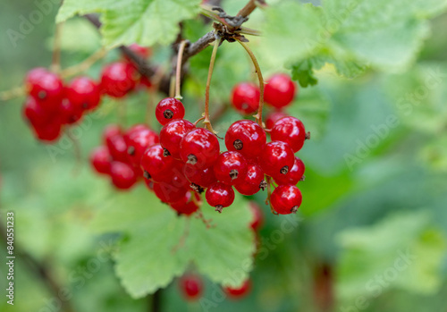 Flowering and fruiting of red currant. Ripe red currants in the garden. Growing red currants.