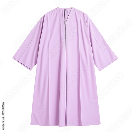 Flowing light purple dress with a V-neckline and wide sleeves. Simple design ideal for casual or semi-formal occasions with an elegant look.