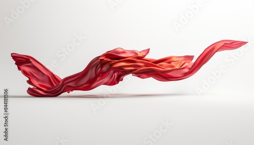 Flowing Red Fabric Against White Background..