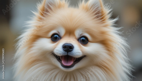 Fluffy Pomeranian Looking Happy with Blurred Background