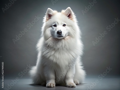 Fluffy Samoyed Dog Posing on Gray Studio Background - Pet Photography