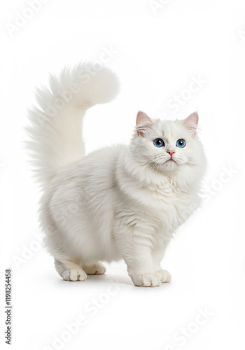 Fluffy White Cat with Blue Eyes Long Fur Studio Shot