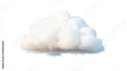 Fluffy White Cloud Isolated on White, Sky, Weather