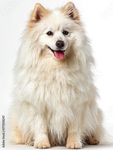 Fluffy white spitz on a white background