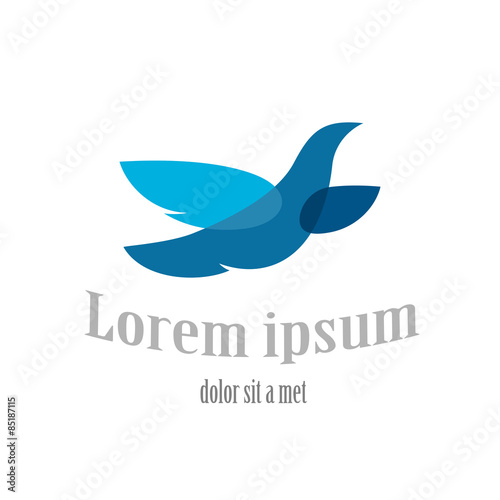 Flying bird logo template. Blue dove symbol. Transparency are fl