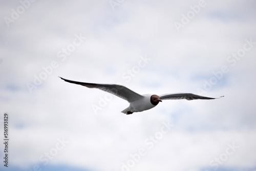 Flying black and white seagull
