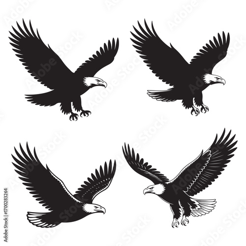 Flying Majestic Bald Eagle Silhouette Over Mountain Landscape