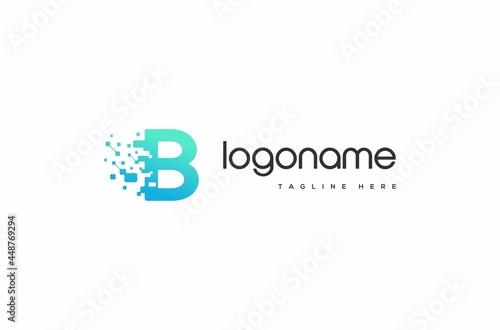 flying pixel logo letter B, pixel logo, technology logo, glitter technology logo