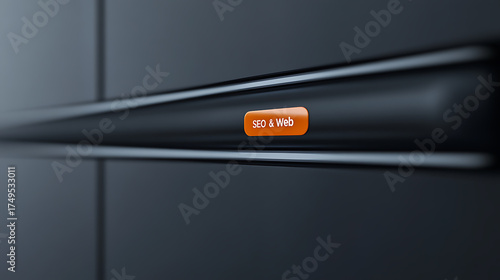 Focus on SEO & Web concept with an orange button on a modern background. It shows online optimization and web development, showcasing the importance of online presence.