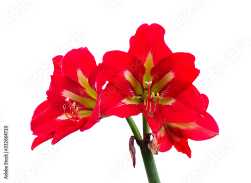 Focus Stacked Red Amaryllis Blossoms Isolated on White