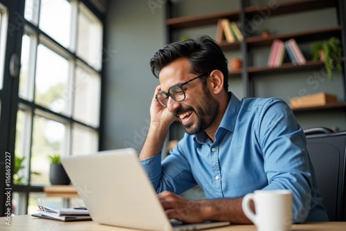Focused Businessman Working on Laptop in Modern Office Setting, Ideal for Business and Productivity Concepts