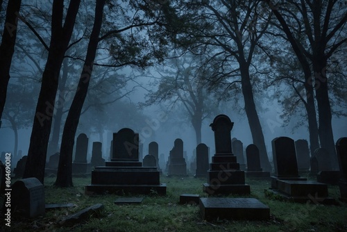Foggy Night in an Abandoned Cemetery.