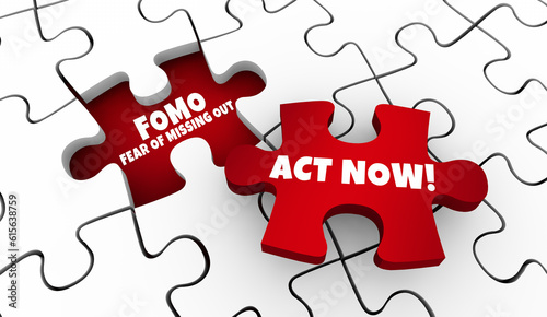 FOMO Fear of Missing Out Puzzle Piece Act Now Opportunity 3d Illustration