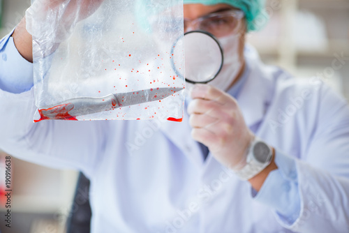 Forensics investigator working in lab on crime evidence