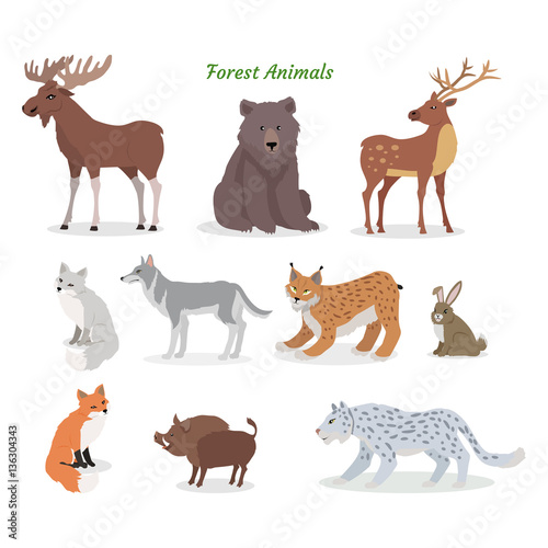 Forest Animals Set. Wildlife Characters. Vector