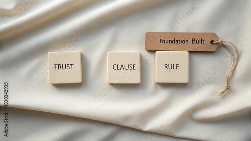 Foundation Built Concept with Trust Clause Rule Words on Fabric Background for Business and Legal Themes