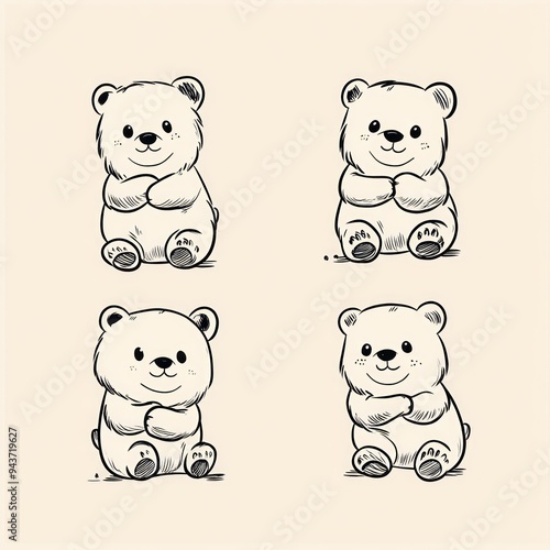 Four cute cartoon bear illustrations in different poses.
