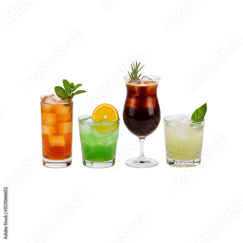 Four refreshing iced cocktails in a row