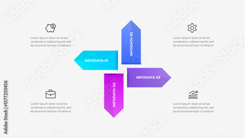 Four step arrows infographic, ideal for presenting data, processes, or business strategies in a visually engaging format. Cycle diagram with 4 processes