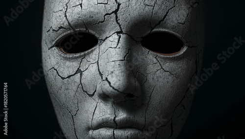 Fractured Facade. A Study in Texture and Light, The Masks Surface and Abstract Shadows.