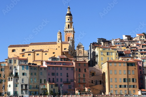 France, côte d'azur, Alpes maritimes, Menton, la basilique Saint Michel, récemment rénovée, et la vieille ville, centre historique.