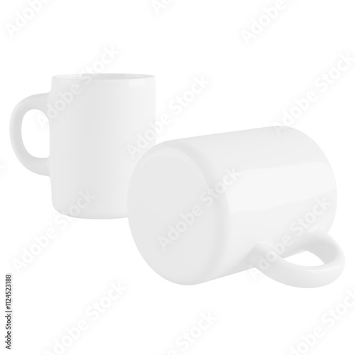 Free PNG 3d illustration of two white ceramic cups are side by side, one of which has a white handle. isolated transparent background perfectly cutout high resolution