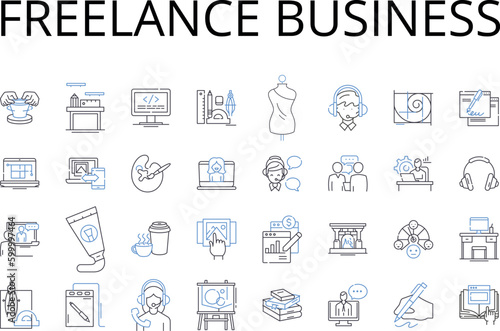 Freelance business line icons collection. Solo entrepreneurship, Independent contracting, Self-directed venture, Sole proprietorship, Independent enterprise, One-person operation, Self-employment