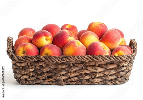 Fresh and Juicy Peaches in a Natural Woven Basket Perfect for Summer Recipes, Fruit Canning, and Refreshing Desserts or Snacks for Any Occasion