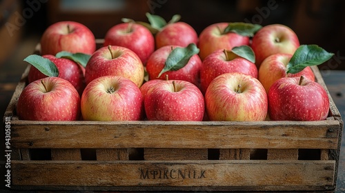Fresh apples in a wooden crate