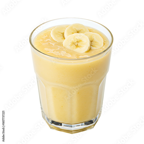 Fresh Banana Smoothie In Glass With Slices Isolated On Transparent Background