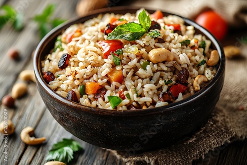 Fresh basil vegetable fried rice vibrant rustic bowl high resolution picture