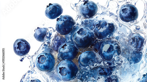 Fresh blueberries splashing in clear water, vibrant and healthy.