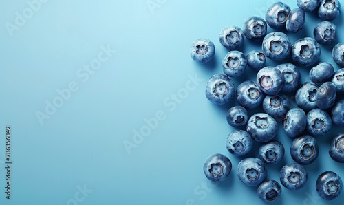 Fresh blueberry slices scattered on a soft blue background, with ample space on the left for text