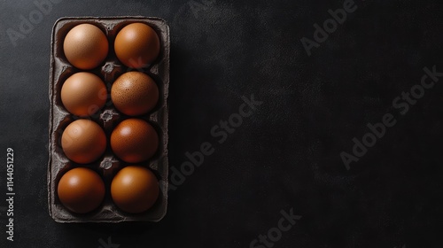 Fresh brown eggs in a carton on a dark background showcasing organic farm-fresh quality and natural texture for culinary imagery