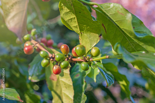 fresh Coffee bean on coffee tree in farm northern Thailand