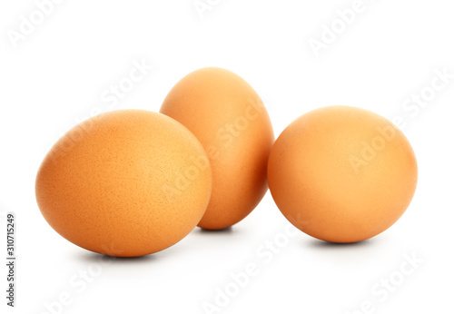 Fresh eggs on white background