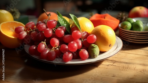 Fresh Fruit Platter: Healthy, Colorful, and Delicious Variety on Plate, Juicy