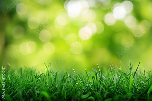 Fresh Green Grass and Bokeh Background for Spring or Summer Design