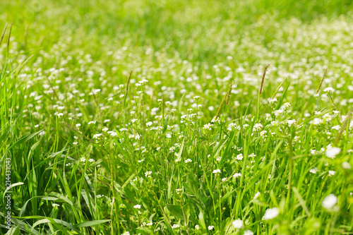 Fresh green spring grass in the morning background