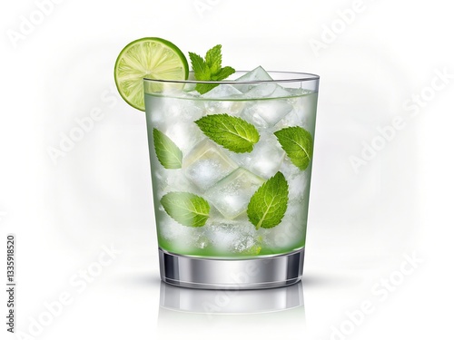 Fresh Mojito Cocktail in Glass with Mint Leaves and Lime Garnish