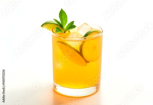 Fresh Mojito cocktail with lime, mint and ice isolated on white background