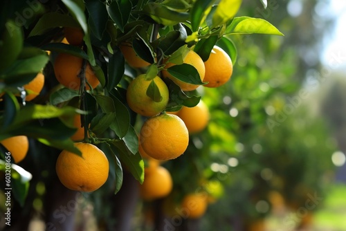 Fresh orange on the plantation AI Generative